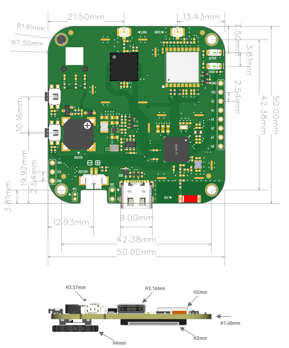 - 2x คอนเนกเตอร์สายอากาศ IPEX (สำหรับ LoRa และ GPS)