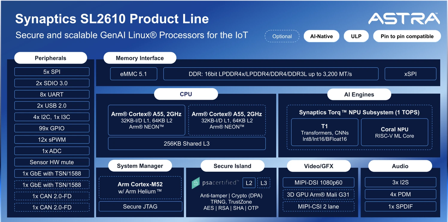 Synaptics SL2610 พร้อมด้วย TorQ และ Coral NPU