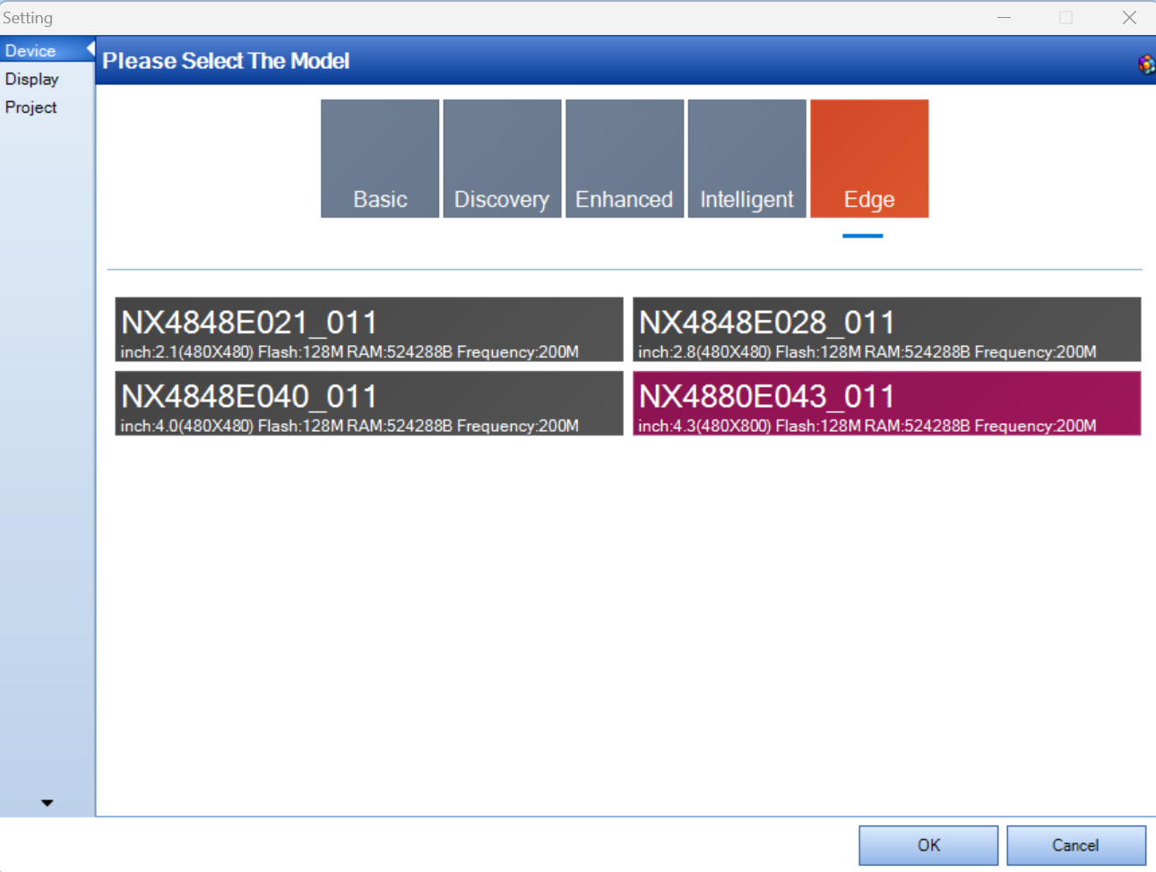 โดยใน Edge Series Touch Displays มีหน้าจอให้เลือกหลากหลายขนาดและรูปแบบ ไม่ว่าจะเป็นหน้าจอกลมรุ่น NX4848E021-011C ขนาด 2.1″ ความละเอียด 480*480, หน้าจอกลมรุ่น NX4848E028-011C ขนาด 2.8″ ความละเอียด 480*480 และหน้าจอสี่เหลี่ยมผืนผ้ารุ่น NX4880E043-011C ขนาด 4.3″ ความละเอียด 480*800