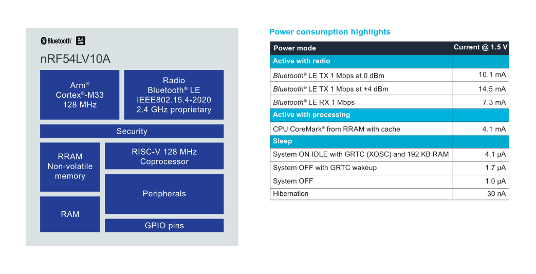 nRF54LV10A block diagram power consumption