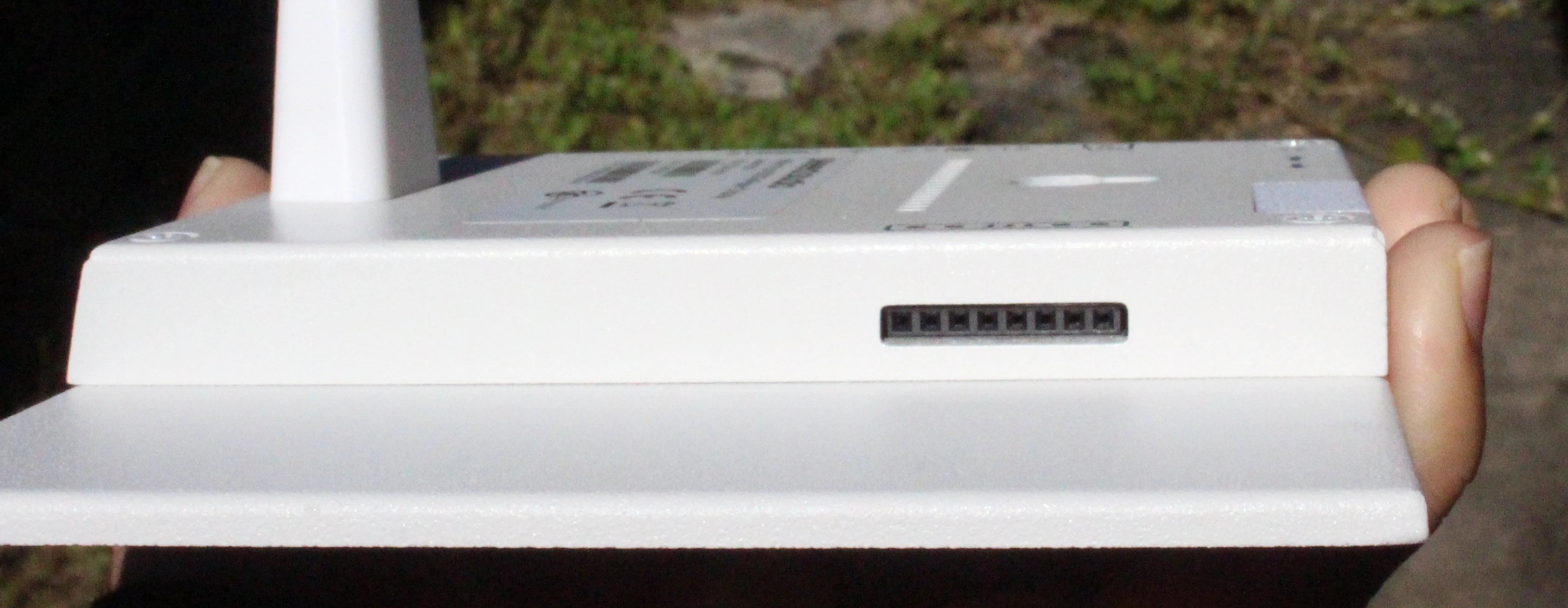 ด้านหลังจะบอกรุ่น และยังมีรูปสัญลักษณ์ของพอร์ตและปุ่มต่างๆ ด้วย