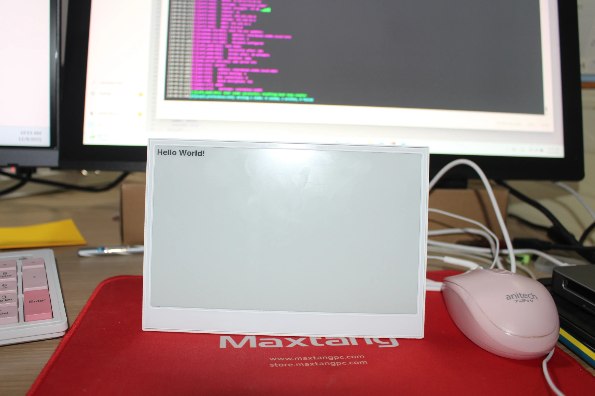 เราเลือกการติดตั้งด้วยวิธี Wirelessly แล้วเฟิร์มแวร์จะถูกติดตั้งลงบนหน้าจอ แล้วเราจะได้ข้อความ “Hello World!” บนหน้าจอ ePaper reTerminal E1001