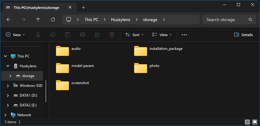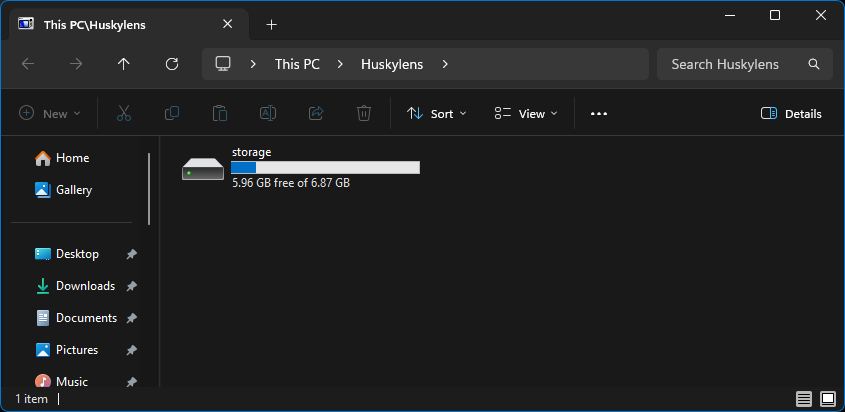 หลังจากรีสตาร์ท HUSKYLENS 2 ผมก็สังเกตเห็นว่าคอมพิวเตอร์ของผมตรวจพบอุปกรณ์เป็น storage device โดยมีไดร์ฟ SD card ปรากฏเพิ่มเติมขึ้นมา แทนที่จะมีเพียง storage ภายใน HUSKYLENS 2 เหมือนในเฟิร์มแวร์ v1.1.5 นอกจากนี้ผมยังได้ทดสอบการอัปเกรดและดาวน์เกรดระหว่าง v1.2.1 และ v1.1.6 หลายครั้งได้โดยไม่มีปัญหาใด ๆ
