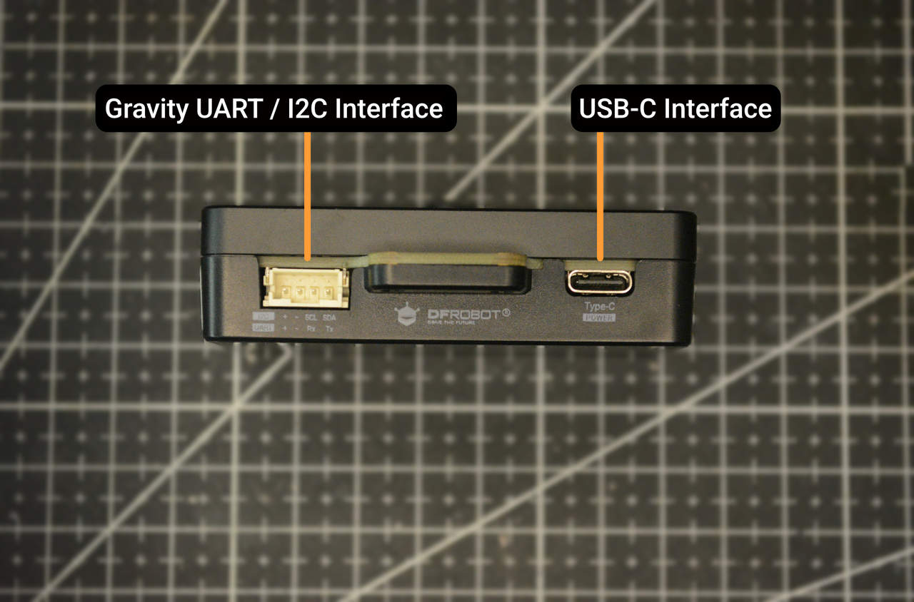 สำหรับการจ่ายไฟนั้นผมทำตามคำแนะนำของผู้ผลิตที่แนะนำให้ใช้บอร์ดแปลงไฟสำหรับการกระจายไฟ ดังนั้นผมจึงเชื่อมต่อ HUSKYLENS 2 เข้ากับบอร์ดแปลงไฟโดยใช้สายเคเบิล 4 ขาที่มีมาให้ จากนั้นผมจึงเชื่อมต่อสายเคเบิล 4 ขาที่ให้มาอีกเส้นเข้ากับขั้วเชื่อมต่อที่มีป้ายกำกับว่า “Gravity” และต่อสายไปยังขา 3.3 V และ GND ของ ESP32 ในขณะที่ตัวมอดูล ESP32 เองนั้นได้รับไฟผ่านการเชื่อมต่อจากสาย USB-C อีกเส้นหนึ่งที่ต่อมาจากคอมพิวเตอร์ของผม
