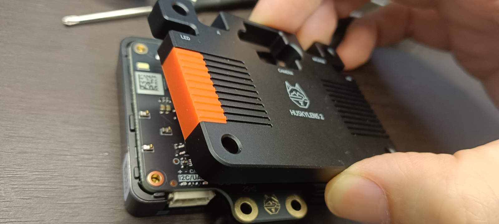 การติดตั้งมอดูลนี้ทำได้โดยการคลายสกรูสองตัวข้างมอดูลเลนส์ตัวเดิม จากนั้นถอดมอดูลเลนส์เดิมออก ถัดไปจึงจัดตำแหน่งขั้วเชื่อมต่อมอดูลเลนส์จุลทรรศน์ให้ตรงกับซ็อกเก็ตบน HUSKYLENS 2 และกดเบา ๆ เพื่อให้แน่ใจการเชื่อมต่อแน่นหนาดี ผมปฏิบัติตามขั้นตอนเหล่านี้และเปิดเครื่องอุปกรณ์ ก็พบว่ากล้องแสดงภาพจากเลนส์ใหม่ได้อย่างถูกต้องดี