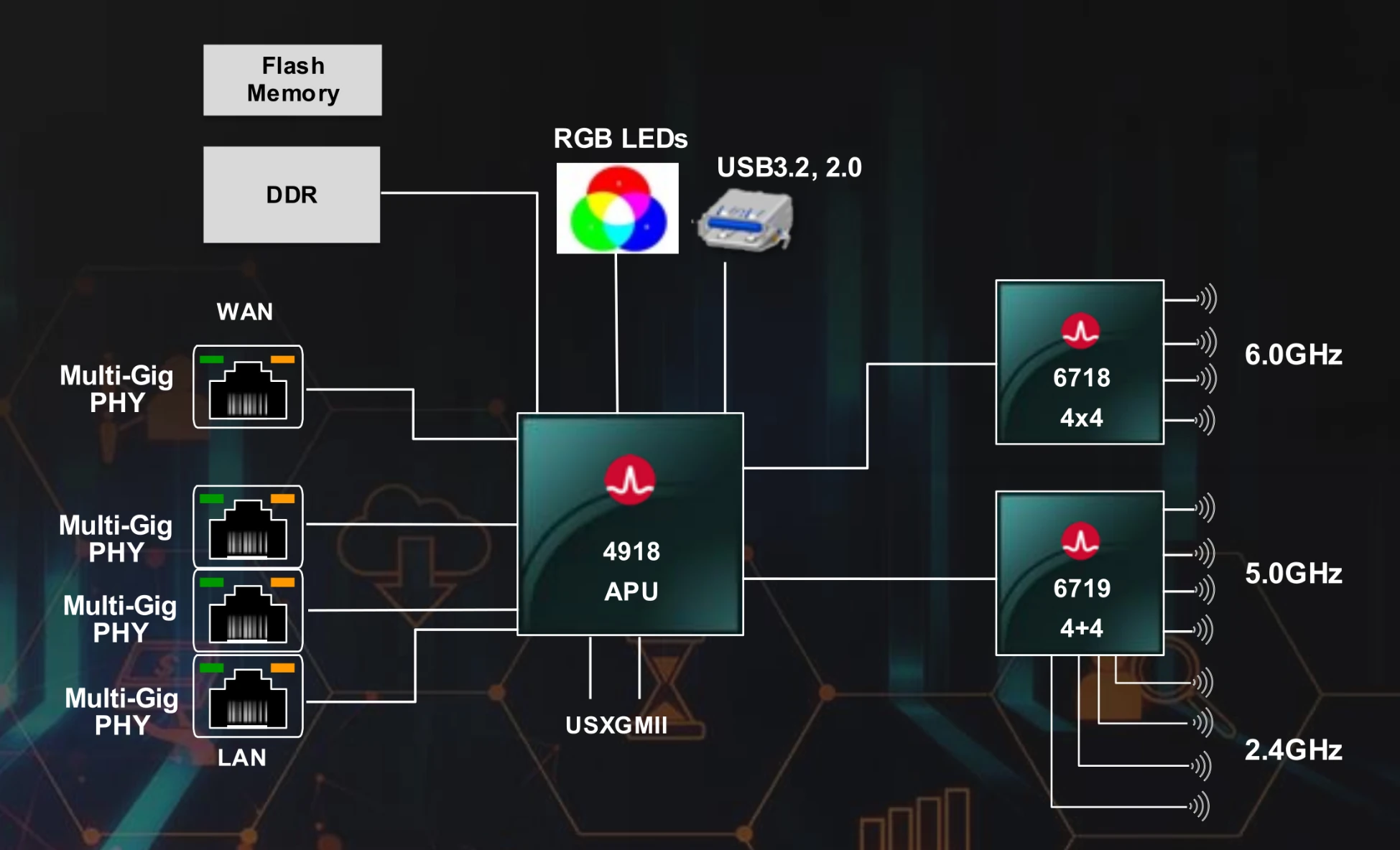 ชิปวิทยุทั้งสองรุ่นพัฒนาต่อยอดจาก ชิป Broadcom BCM6718 WiFi 8 tri-band SoC โดยมีการจัดวางสายอากาศต่างกัน ได้แก่ BCM6719: 4×4 ที่ย่าน 2.4GHz และ 4×4 ที่ย่าน 5GHz, BCM6714: 3×3 ที่ย่าน 2.4GHz และ 4×4 ที่ย่าน 5GHz ทั้งสองรุ่นรวม Power Amplifier (PA) สำหรับย่าน 2.4GHz ไว้ในชิป ส่วน AP4918 เป็นการพัฒนาต่อยอดจาก AP4916 แต่เราไม่สามารถขอรายละเอียดเชิงลึกเกี่ยวกับการปรับปรุงจากตัวแทนของ Broadcom ได้
