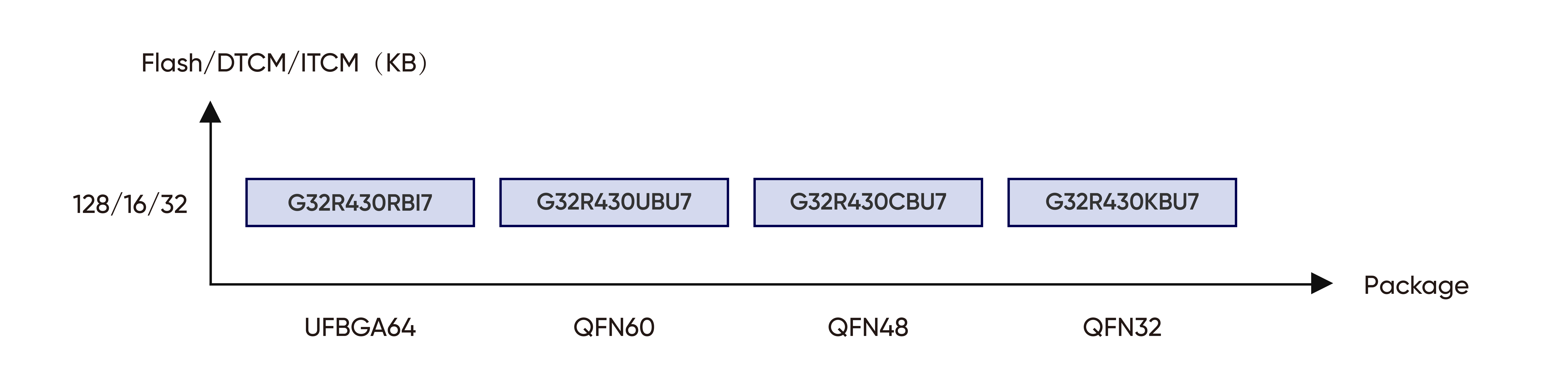 ขณะเขียนบทความนี้มี G32R430 ให้เลือกทั้งหมด 4 รุ่นย่อย (SKU) ซึ่งแตกต่างกันตามชนิดแพ็กเกจ จำนวนขา I/O และจำนวนช่อง ADC โดยในข่าวประชาสัมพันธ์ของบริษัท ไม่ได้ระบุข้อมูลด้านราคาและกำหนดวางจำหน่าย แต่ทางเราได้รับข้อมูลทางอีเมลว่าผลิตภัณฑ์ตระกูล G32R430 ยังไม่ได้เปิดตัวในตลาดต่างประเทศ นอกจากนี้บอร์ด G32R430 TinyBoard ยังไม่เข้าสู่การผลิตในระดับอุตสาหกรรม (mass production) แม้ว่าจะมีการจัดสรรตัวอย่างจำนวนจำกัดสำหรับการทดสอบและประเมินผลโดยลูกค้าที่กำลังดำเนินการอยู่ในขณะนี้ก็ตาม โดยสามารถดูข้อมูลเพิ่มเติมได้จากหน้าเว็บผลิตภัณฑ์ของ Geehy