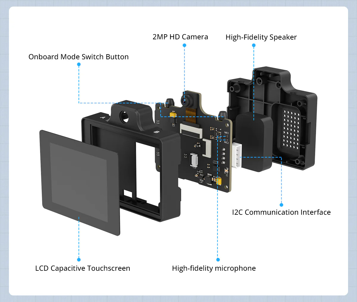 Hiwonder WonderLLM – โมดูลแชตอัจฉริยะ ESP32-S3 พร้อมจอสัมผัส 2 นิ้ว กล้อง 2MP และชิปเสียง