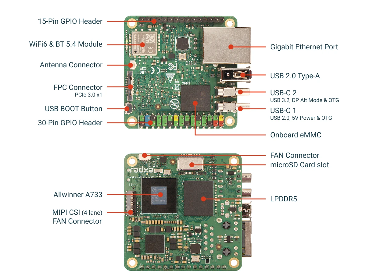 แปลจากบทความภาษาอังกฤษ : Cubie A7S – A compact Allwinner A733 SBC with USB-C DisplayPort, GbE, WiFi 6, PCIe Gen3 FFC connector, GPIO headers