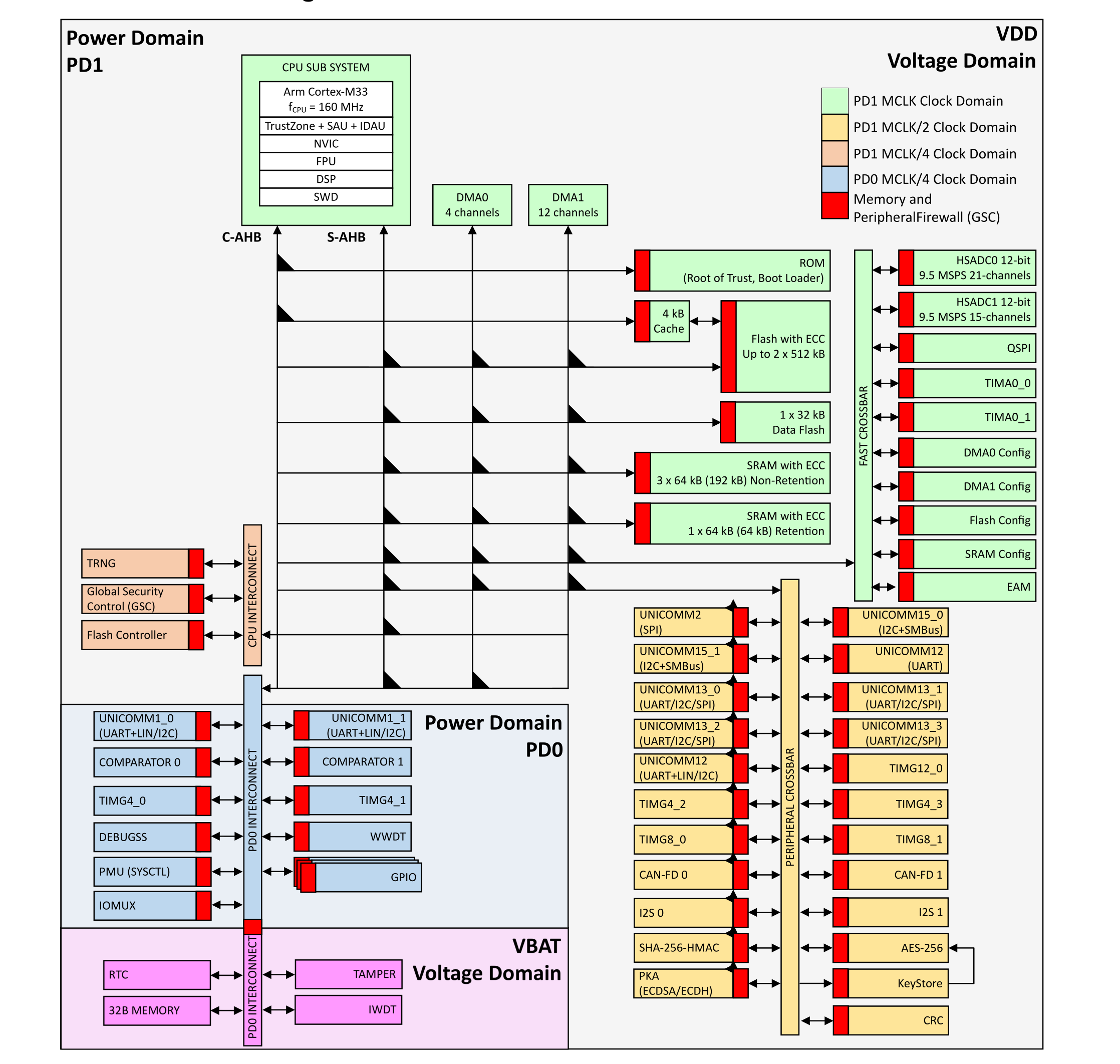 Texas Instruments MSPM33C321A เป็นไมโครคอนโทรลเลอร์ แบบ mixed-signal รุ่นใหม่ ใช้ซีพียู Arm Cortex-M33 ทำงานที่ความถี่ 160MHz มาพร้อมแฟลชสูงสุด 1MB พร้อม ECC และ SRAM ขนาด 256KB พร้อม ECC รวมถึงอุปกรณ์ต่อพ่วงดิจิทัลและแอนะล็อกที่หลากหลาย