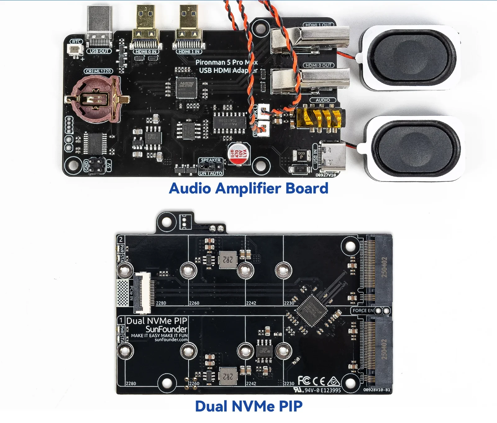 Pironman 5 Pro Max เป็นเคสสำหรับ Raspberry Pi 5 รุ่นล่าสุดจากบริษัท SunFounder โดยตัวเคสรุ่นใหม่นี้ได้เพิ่มอุปกรณ์หลายอย่างเข้ามา ได้แก่ หน้าจอสัมผัสแบบ capacitive ขนาด 4.3 นิ้ว, โมดูลกล้อง 5MP, ตัวยึดสำหรับติดตั้งโมดูลกล้องของ Raspberry Pi, ลำโพงสเตอริโอ, ไมโครโฟนแบบ USB และช่องเสียบหูฟัง 3.5 มม.