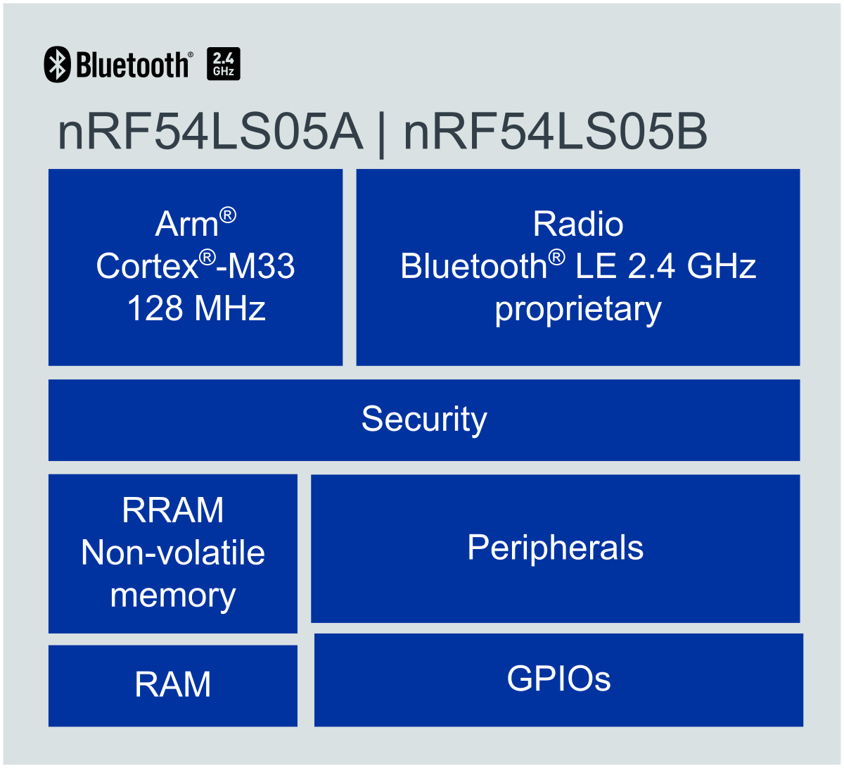 ทั้งสองรุ่นทำงานที่ความถี่ 128 MHz และมาพร้อม วิทยุ Bluetooth Low Energy รุ่นที่ 4 ของ Nordic Semiconductor, อินเทอร์เฟซอนาล็อกและดิจิทัล รวมถึงระบบความปลอดภัยขั้นสูง ทั้งสองรุ่นยังมีหน่วยความจำ Non-Volatile Memory (NVM) ขนาด 0.5 MB โดยความแตกต่างหลักระหว่างสองรุ่นคือ nRF54LS05A มี RAM ขนาด 64 KB ขณะที่ nRF54LS05B มี RAM ขนาด 96 KB