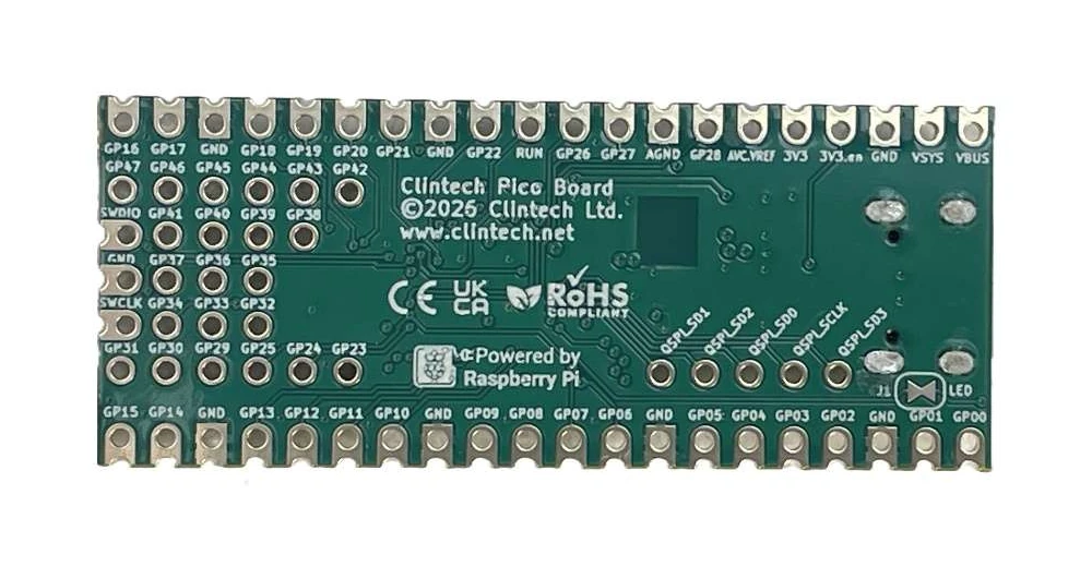 Clintech Pico Board ที่ออกแบบโดย Clintech Ltd. จากประเทศบัลแกเรีย, เป็นบอร์ดพัฒนารุ่นแรกที่ใช้ชิป Raspberry Pi RP2354B ซึ่งมีหน่วยความจำแฟลชภายในขนาด 2MB โดยยังคงรูปทรง (form factor) เดียวกับ Raspberry Pi Pico 2 แต่เพิ่มจำนวน GPIO เพื่อให้สามารถใช้งานขา GPIO ทั้งหมด 48 ขาที่มีอยู่ในชิป RP2354B ได้อย่างเต็มที่