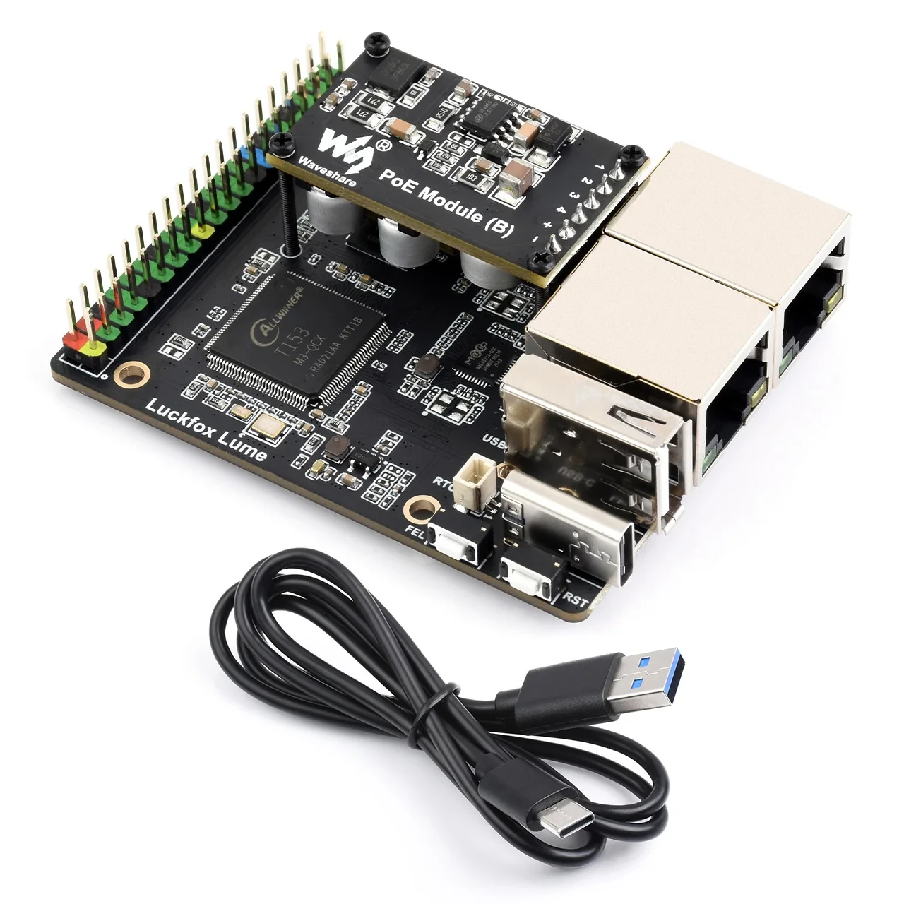 Luckfox Lume เป็นบอร์ดคอมพิวเตอร์อุตสาหกรรมขนาดกะทัดรัด (SBC) ที่ใช้ชิป Allwinner T153 quad-core Cortex-A7 พร้อมคอร์ RISC-V สำหรับงานประหยัดพลังงาน มาพร้อมหน่วยความจำ DDR3 128MB, SPI NAND flash 256MB รวมถึงพอร์ต Gigabit Ethernet แบบคู่