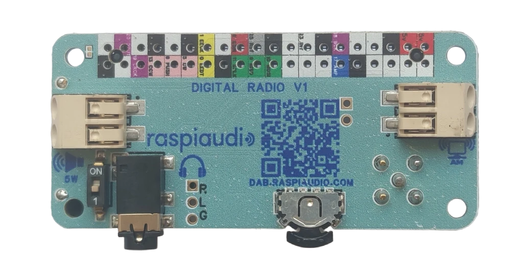 Raspiaudio Digital Radio V1 HAT เป็นบอร์ดเสริมที่เพิ่มความสามารถในการรับสัญญาณวิทยุ AM/FM, DAB/DAB+ และ HD Radio ให้กับบอร์ด Raspberry Pi ทุกรุ่นที่มี GPIO header แบบ 40 พิน โดยรองรับการตั้งค่าและควบคุมผ่านซอฟต์แวร์แบบ CLI หรือผ่านเว็บเบราว์เซอร์