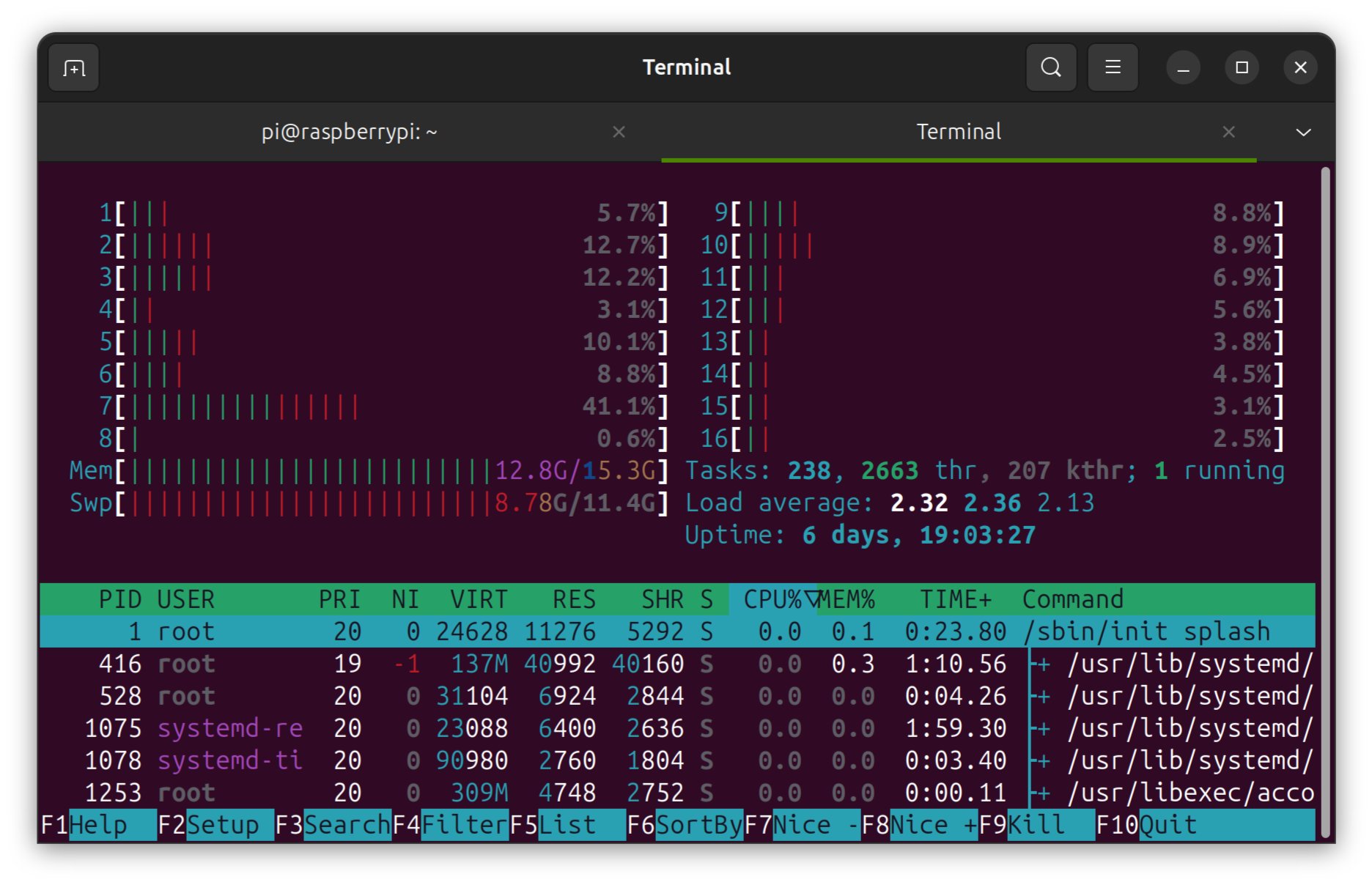 jaufranc@CNX-LAPTOP-5:~$ zramctl NAME ALGORITHM DISKSIZE DATA COMPR TOTAL STREAMS MOUNTPOINT /dev/zram0 lzo-rle 7.6G 6.6G 2.1G 2.1G [SWAP] jaufranc@CNX-LAPTOP-5:~$ swapon NAME TYPE SIZE USED PRIO /swapfile file 8G 5.6G -2 /dev/zram0 partition 7.6G 7.3G 5 jaufranc@CNX-LAPTOP-5:~$ free -mh total used free shared buff/cache available Mem: 15Gi 9.6Gi 4.3Gi 2.4Gi 3.4Gi 5.7Gi Swap: 15Gi 12Gi 2.7Gi |
