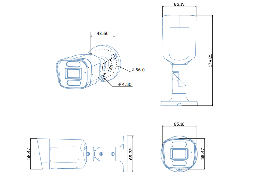 - เซ็นเซอร์ 5MP: SONY IMX335 ขนาด 1/2.8″ ความละเอียด 2592×1944, รูรับแสง F2.0 (F2.56 ในรุ่น 1126B), ระยะโฟกัส 4มม., โฟกัสคงที่